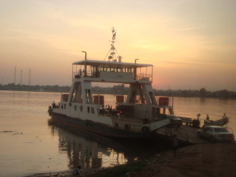 このプノンペン~ホーチミン間の道は、日本の援助などで良く整備されているのですが、物流の面で唯一難点は、途中に流れるメコン川にまだ橋がかかっていないことです。画像のように車ごとフェリーに乗り、15分ほどかけて対岸に渡る必要があります。平日は、せいぜい10~20分の待ち時間ですみますが、お盆などの帰省ラッシュに重なると、平気で一時間以上、待つことになるそうです。まあ、船でメコン川をゆっくり渡るのも、風情があって個人的には好きなのですが、物流効率という面では、あきらかに橋の早期建設が期待されます。なお、この橋の建設は日本のODA案件となっています。