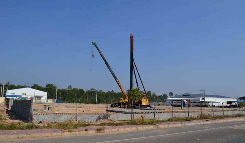 また、3ヶ所の現場(左からタイワ精機社、マルサン・プラスチック社、タイカ社)で、杭打ち工事が始まっています。7ヶ月後くらいが、とても楽しみです。いずれも日本語対応出来る地場資本の建設会社が、日本の中小企業のニーズに上手く答えて、請け負っています。
