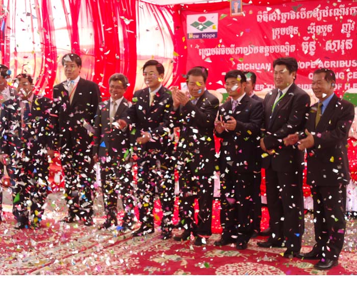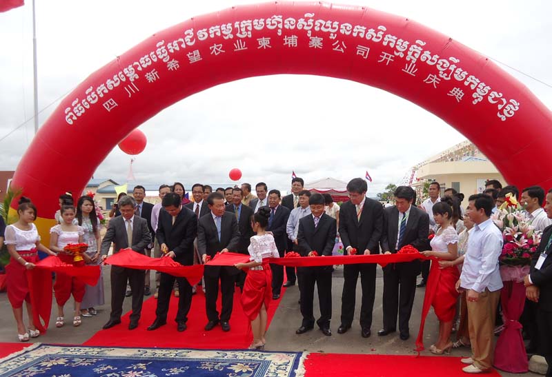 8月28日(日)に、中国最大手のアグリビジネス会社の新希望集団カンボジア工場の開所式が盛大に行われました。チャン・サルン(Chan Sarun)農業水産大臣、チア・ブッティ(Chea Vuthy)カンボジア開発評議会副事務総長が招待されていました。中国らしく(?)赤色を基調に、派手な演出を交えた式典でした。