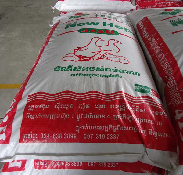 画像のような家畜の飼料を国内市場向けに生産販売し始めています。カンボジアでも養豚養鶏産業が育ってきており、飼料産業もそれに合わせて、これから成長が期待出来る産業と言えます。