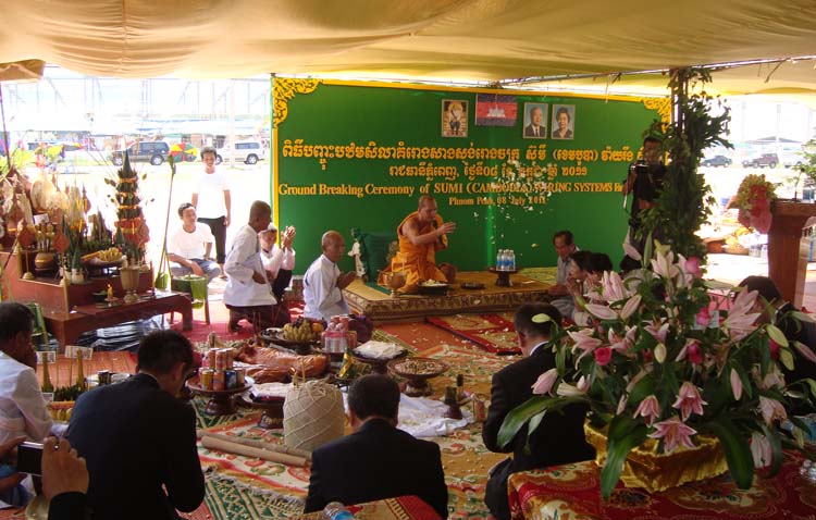 7月8日(金)には、住友電装の100%子会社、Sumi (Cambodia) Wiring Systems社の地鎮祭が厳かに執り行われました。3haの土地に来年5月の操業開始を目標に自動車用ワイヤーハーネスの生産工場を建設します。同社ウェブサイトの海外関係会社ページにしっかりカンボジア法人の名前が記されました。