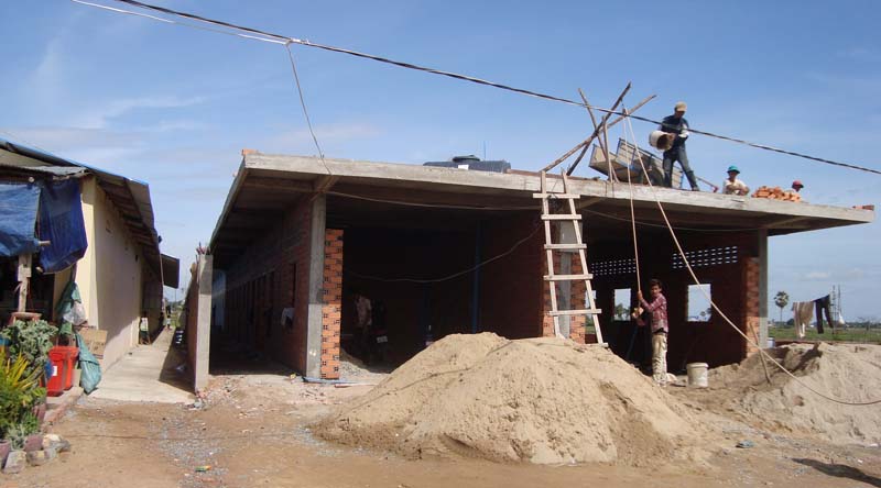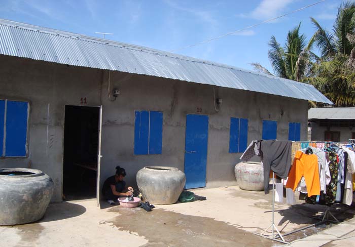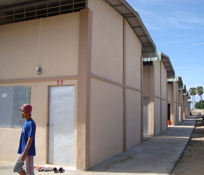 入居企業が増えてくるにしたがって、当然工場で働く工員さんの数も増加中です。現在、5,000名以上の工員さんがPPSEZで働いており、かなりの割合は地方から出稼ぎに来ています。そこで必要なのは、ドミトリーです。カンボジアでは中国と違って、工場の敷地内にドミトリーをつくることは、まだ一般的ではありません。したがって工場が増えてくると、周りに地元のカンボジア人土地持ちが、ドミトリーを商売として建て始めます。