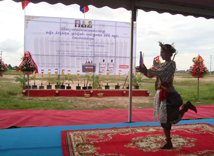 画像は、こうしたカンボジアの式典には必ず登場する伝統舞踊アプサラダンス、何度見てもあでやかな動きにみとれてしまいます。そして、THIBIDI本社社長の挨拶です。