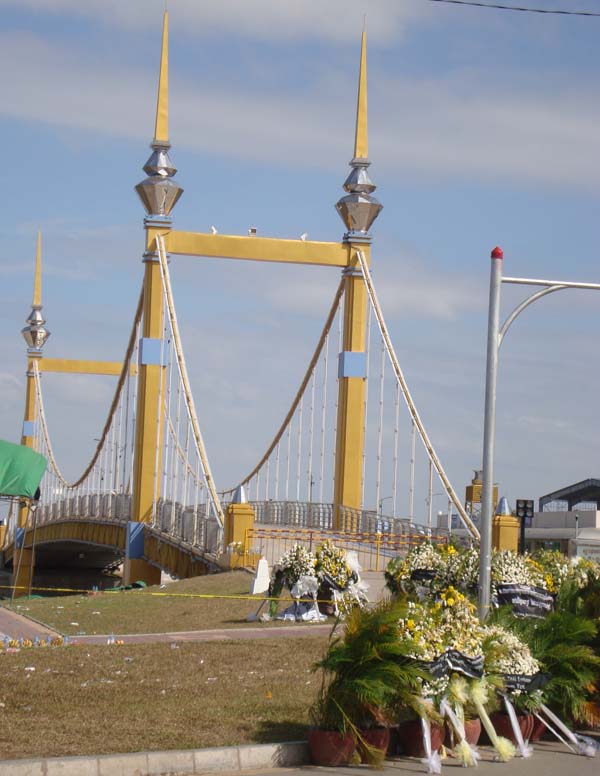 1つ目は、この橋は今年開通した新しい橋です。橋の向こうにはカンボジアの人たちの新しい娯楽スポット、遊園地やショッピングセンター、展示場などがあります。プノンペン市内の近年の開発は目を見張るものがあり、このような近代的な施設が増えている一方で、安全対策が追いついていない現状があります。今回の事故では、この新しい施設への水祭り中の人の流れを予測しきれなかったのでしょう。