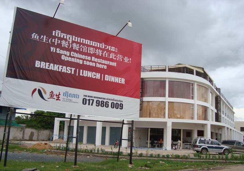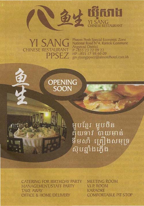 PPSEZ入り口の商業施設に、中華料理店「YI SANG」が8月末オープン予定です。個室部屋もあるので、オープン後にPPSEZにご来訪いただくお客様は、ここでゆっくりと食事をしていただくことも出来ます。また、持ち帰りや入居企業への配達サービスも行うということです。カラオケも用意するようで、工場内の建物で生活している台湾人や中国人をターゲットにしているのでしょう。