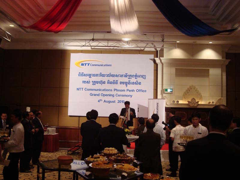 8月4日(水)にインターコンチネンタルホテルで、NTTコミュニケーションズ・プノンペンオフィスの開所式が行われました。既にNTTの方々には、PPSEZの方にも何度か足を運んでいただいていますが、これから進出される日本企業のITインフラを支える心強い存在となってもらえると期待しています。