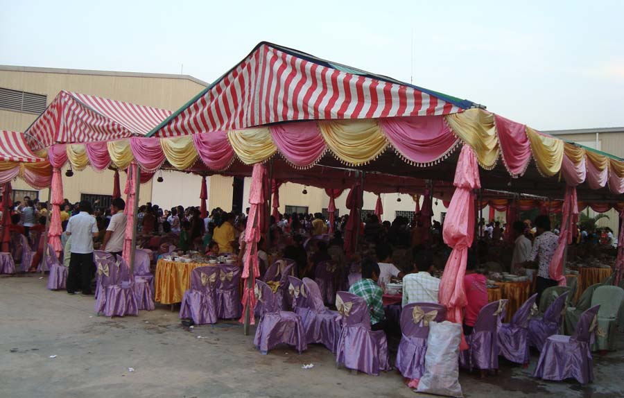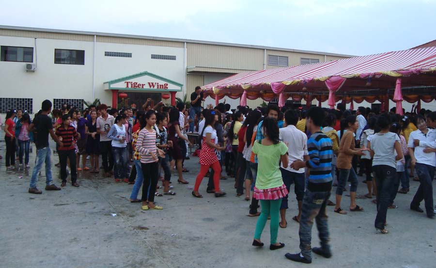 そのタイガーウイング工場で、4月11日(日)にクメール正月を祝うパーティーがありました。工員さんとその家族、地元の村長さんたちが集まり、異様な盛り上がりを見せていました。