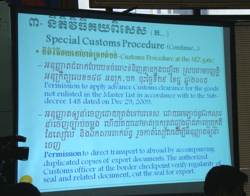 ペン・サマアディレクターの「経済特区を、カンボジアへの投資を促進するために、特別にする!というスピリットのもと、我々は改革を続ける。」という強い意思表明には、素直に感動すらおぼえました。また、3ヶ月前に新設されたばかりの経済特区を管轄する部署の責任者、キム・ヌオンディレクター(Director of Office in charge of Dept. of Free Zone Management)が最後に、「今まで色々といたらない点があったとすれば、お詫びします。これからは、積極的に民間企業と情報交換、意見交換の場を持ち、何か問題が発生すれば直接顔を突き合わせて解決していきましょう。」と、サービス精神あふれる挨拶を行い、これまた関心してしまいました。