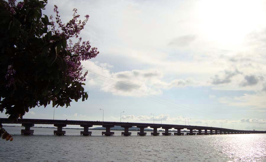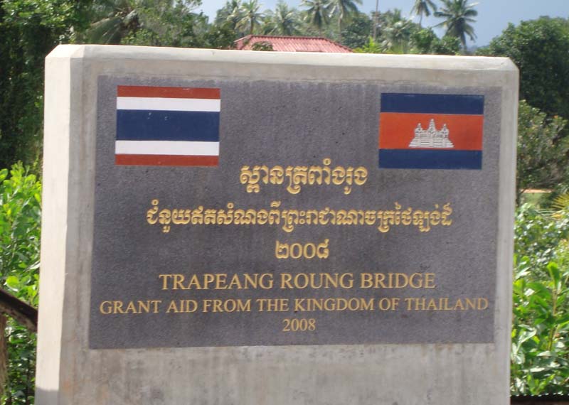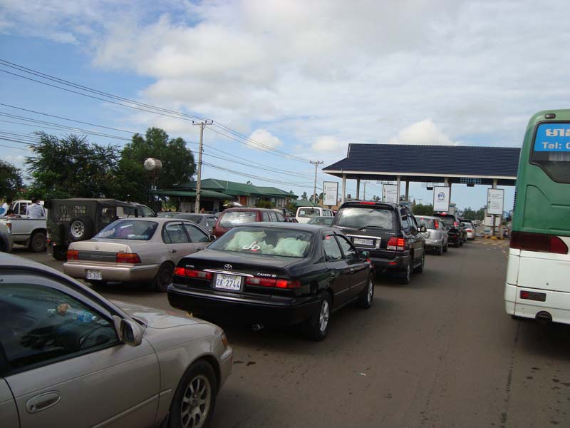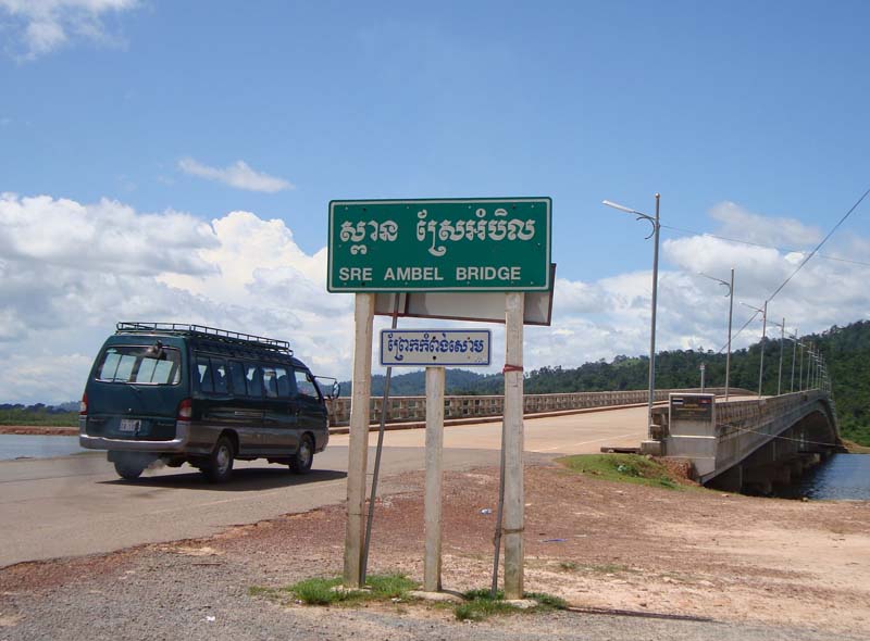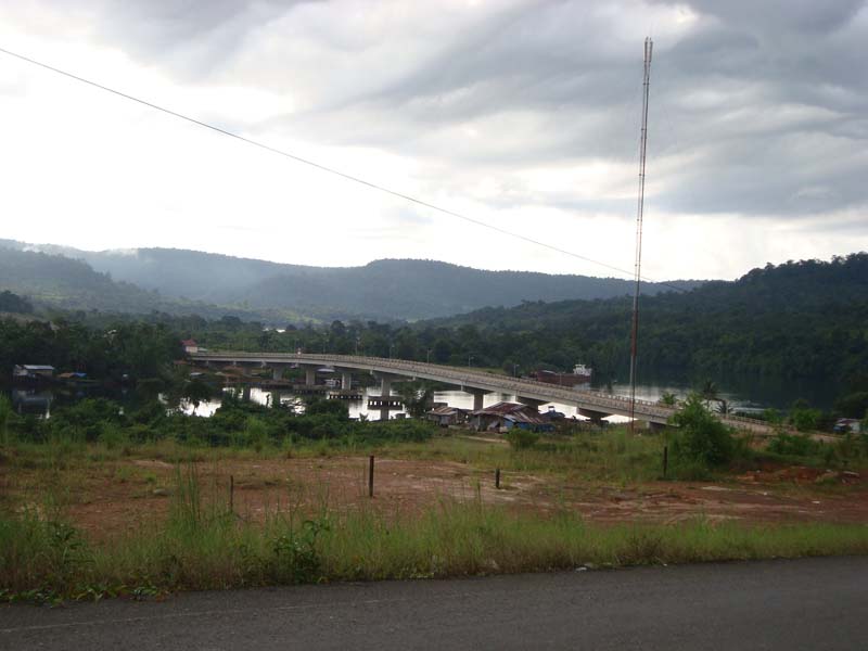 コッコン市内に入ると、タイとの国境につながる長さ1.5kmほどの橋がかかっています。兵隊や警察が立っていたので、最初、検問があるのかなと思って、恐る恐る橋に向かうと、別に止められることもなくあっさり橋を渡ることができました。渡りきった所に料金所があり、普通車で4,800リエル(約1.2ドル)の通行料を払いました。