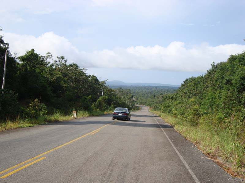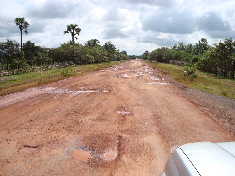 スムーズさでは4号線にかないませんが、アスファルト舗装された道を時速80kmほどで飛ばし、田園と熱帯雨林地帯を突き抜ける感じです。途中、雨期で水がたまったせいだと思いますが、道路がデコボコになっており、スピードを落とさないと通れない場所がいくつかあります。今後のメンテが大きな課題でしょう。