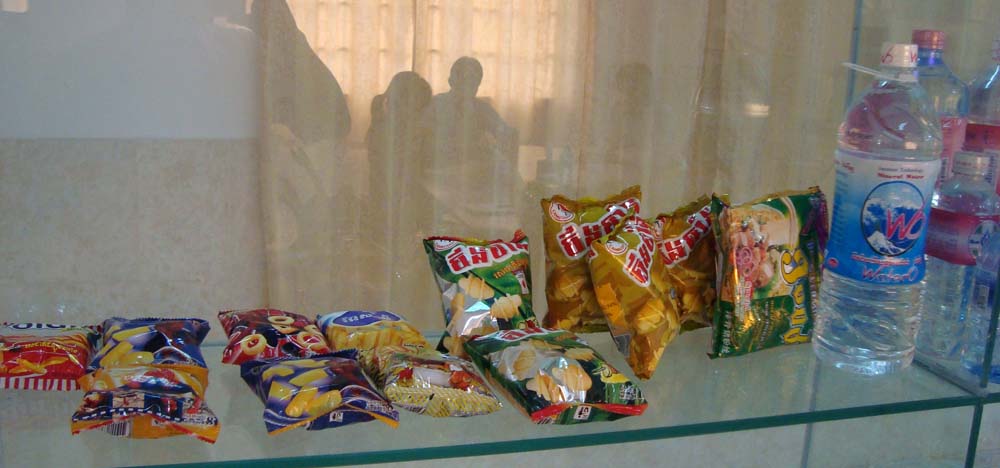 話しを聞いた限りでは、画像にあるようなプラスチック袋を生産しているとのこと。飲料製品のペットボトルはつくらず、それに巻きつける製品情報を書いたプラスチックをつくっているとのことです。カンボジアで人気の高いエースコック社のヴェトナムフォー(ヌードル)も置いてあり、「これカンボジアでつくってないでしょ。ヴェトナムからの輸入品だよね。」と問いただすと、「確かにうちではつくってないが、同じものをつくれるから、サンプルとして置いてあるんだ。」とのことでした。「生産ラインを見せてくれるか?」と聞いたら、「社外秘なので、申し訳ないが、見せられない。」とのこと。「でも日本企業は、生産ライン確認しないと発注できないよ。」と切り返すと、「もし、日本のメーカーが視察に来たら、その時は見せるようにする。」とのことでした。