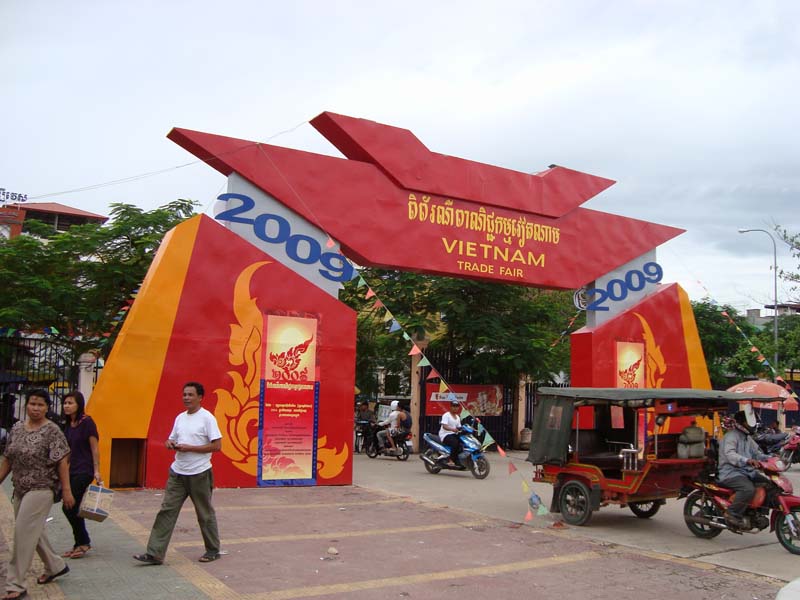 9月2日から6日まで、ヴェトナムトレードフェアがプノンペン市内で、開催されました。最近、ヴェトナムの銀行が開業したり、携帯電話会社も参入したり、送電線を引いて電力を供給したり、何かとカンボジアへの経済的プレゼンスが高まっているのを感じます。