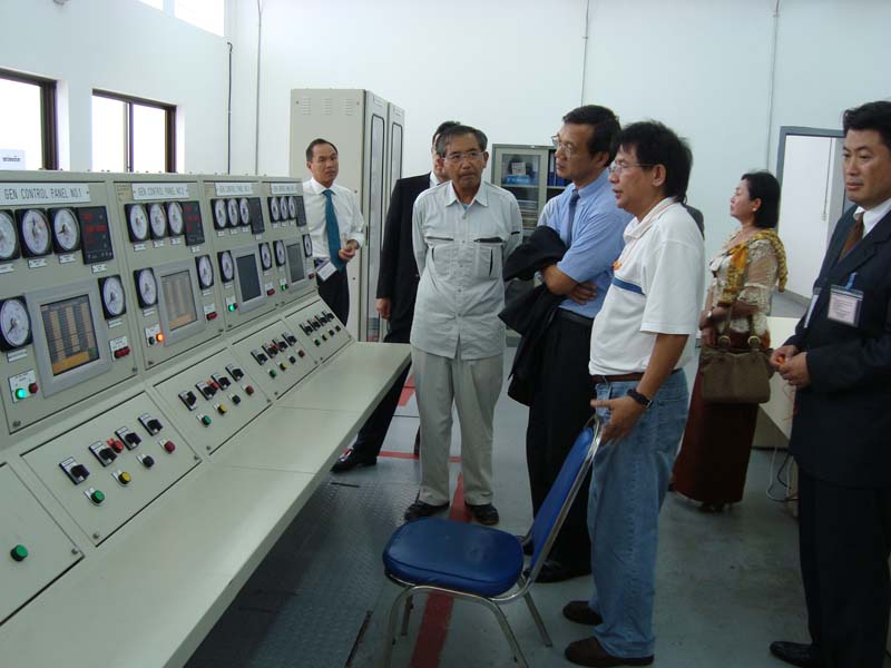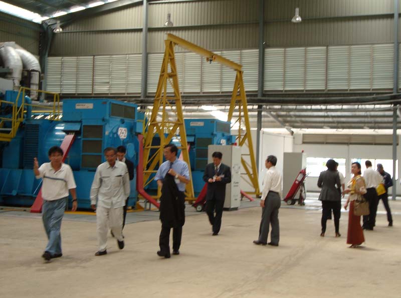 続いて、日本の革靴メーカー、タイガーウィング社の工場、ドライポート、自家発電施設を視察され、熱心に質問をされていました。