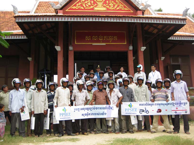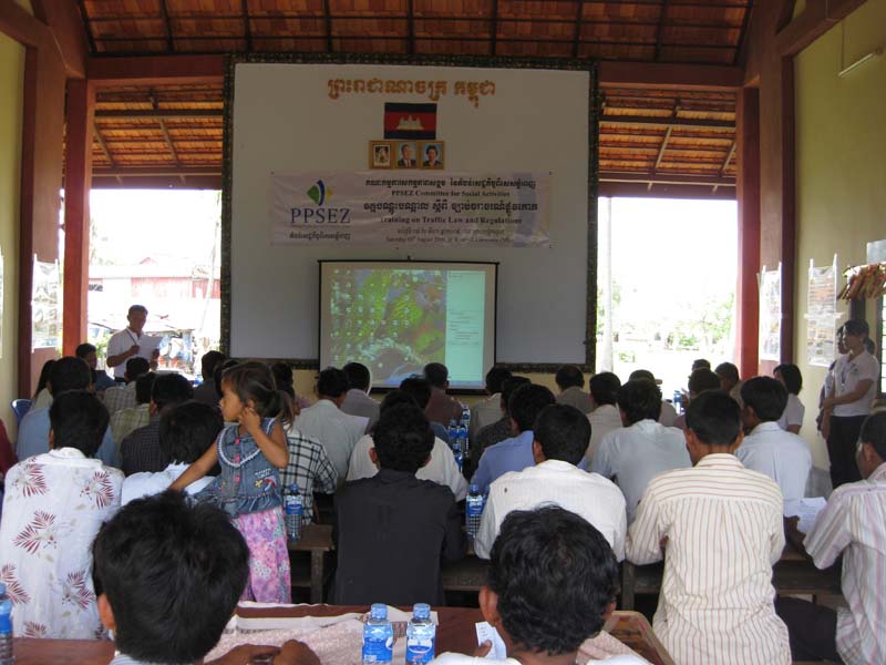 今回のテーマは、「交通安全」です。PPSEZは、プノンペンの郊外にあるため、市内中心部と比べると、まだまだヘルメットをかぶらずバイクを運転する人が多いし、国道4号線でも交通量が年々増加するにつれて、死亡事故も増えています。そこで、村のバイクタクシーのドライバーを対象にした交通安全教室が良いだろうという話しになったわけです。