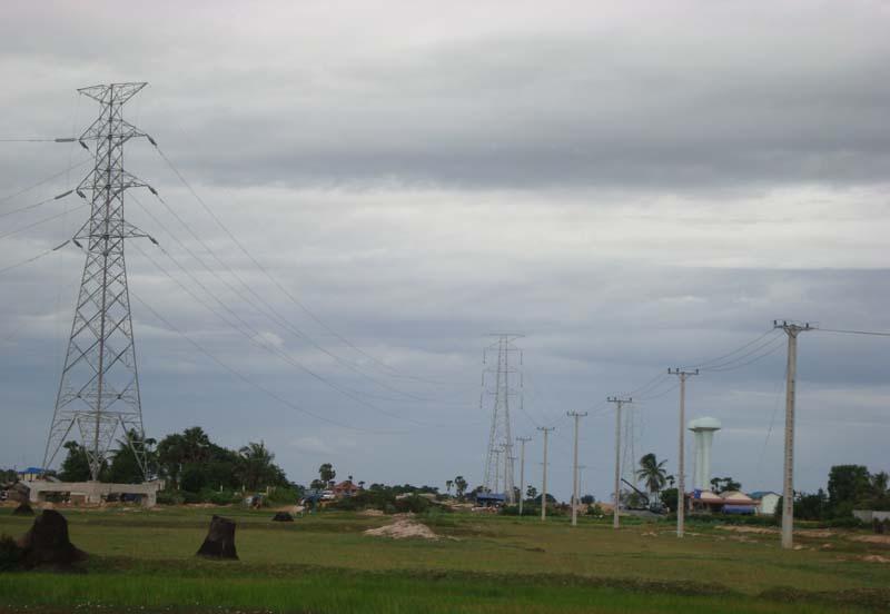 PPSEZの第3期区域を横切って、カンボジア電力公社(Electricite du Cambodge, EDC)がヴェトナムからの送電線を建設中です。世界銀行、アジア開発銀行等の融資事業ということです。ヴェトナム南部からカンボジアのタケオ州を通って、プノンペン市内まで230kVの高圧電線が、近々つながります。これにより、首都圏の慢性的な電力不足を解消する一助にできます。カンボジアとヴェトナムは、ポルポト時代以降、政府間の良好な関係を維持しており、協力関係が反対側の隣国、タイと比べて緊密です。