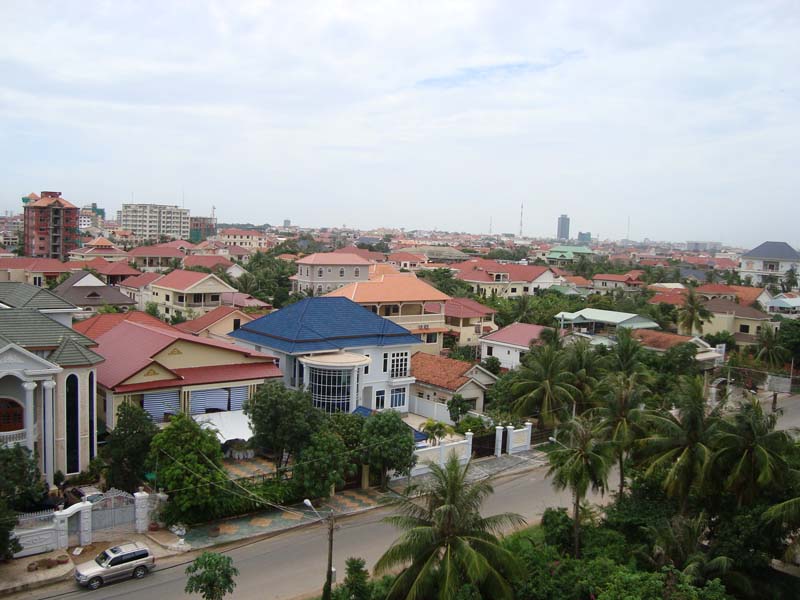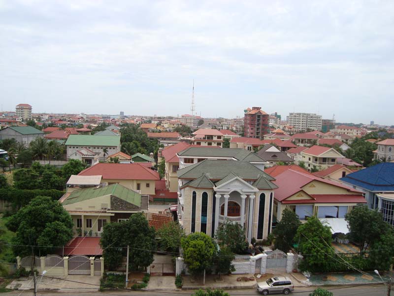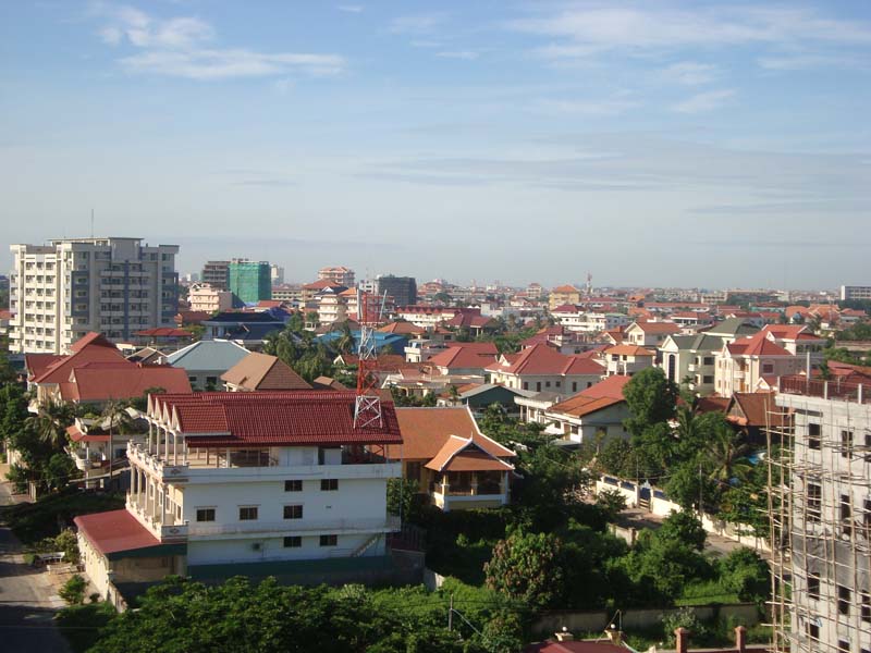 プノンペン北部の新興高級住宅地、トゥールクォーク地区から撮ったプノンペン市内の街並です。
