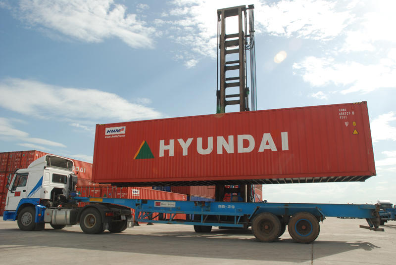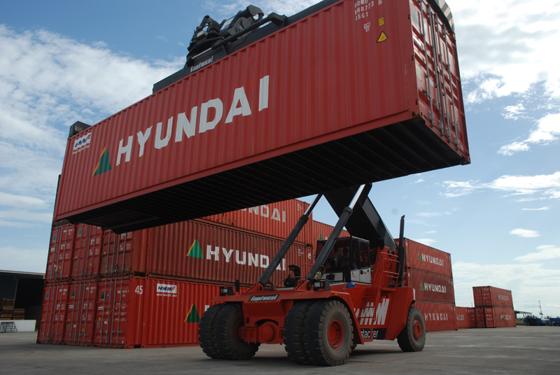 ドライポートでは、40ftのコンテナを移動させたり、コンテナトラックに積み込む重機をフル活用させています。