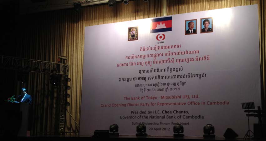 4月20日(金)の夜に、三菱東京UFJ銀行プノンペン駐在員事務所の開業パーティーが、市内ホテルで行われました。